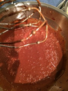 Ist die Schokolade geschmolzen, den Topf beiseite stellen und etwas abkühlen lassen.