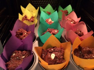 Dann noch die gehackte Schokolade unterheben und die Muffinförmchen befüllen.