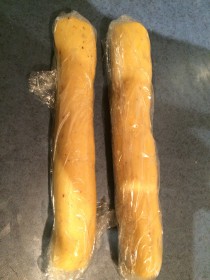 Den Teig halbieren, zu Rollen formen und in Folie im Kühlschrank für eine Stunde ruhen lassen.