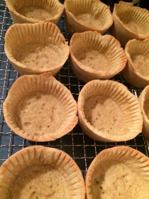 Für 20 Minuten bei 180°C (Ober- Unterhitze) backen. Danach kurz abkühlen lassen und die noch lauwarmen Förmchen herausnehmen (sie haften an den Papier-Förmchen), die Linsen ausschütten und die Papierförmchen abziehen. Dann die Förmchen komplett abkühlen lassen.