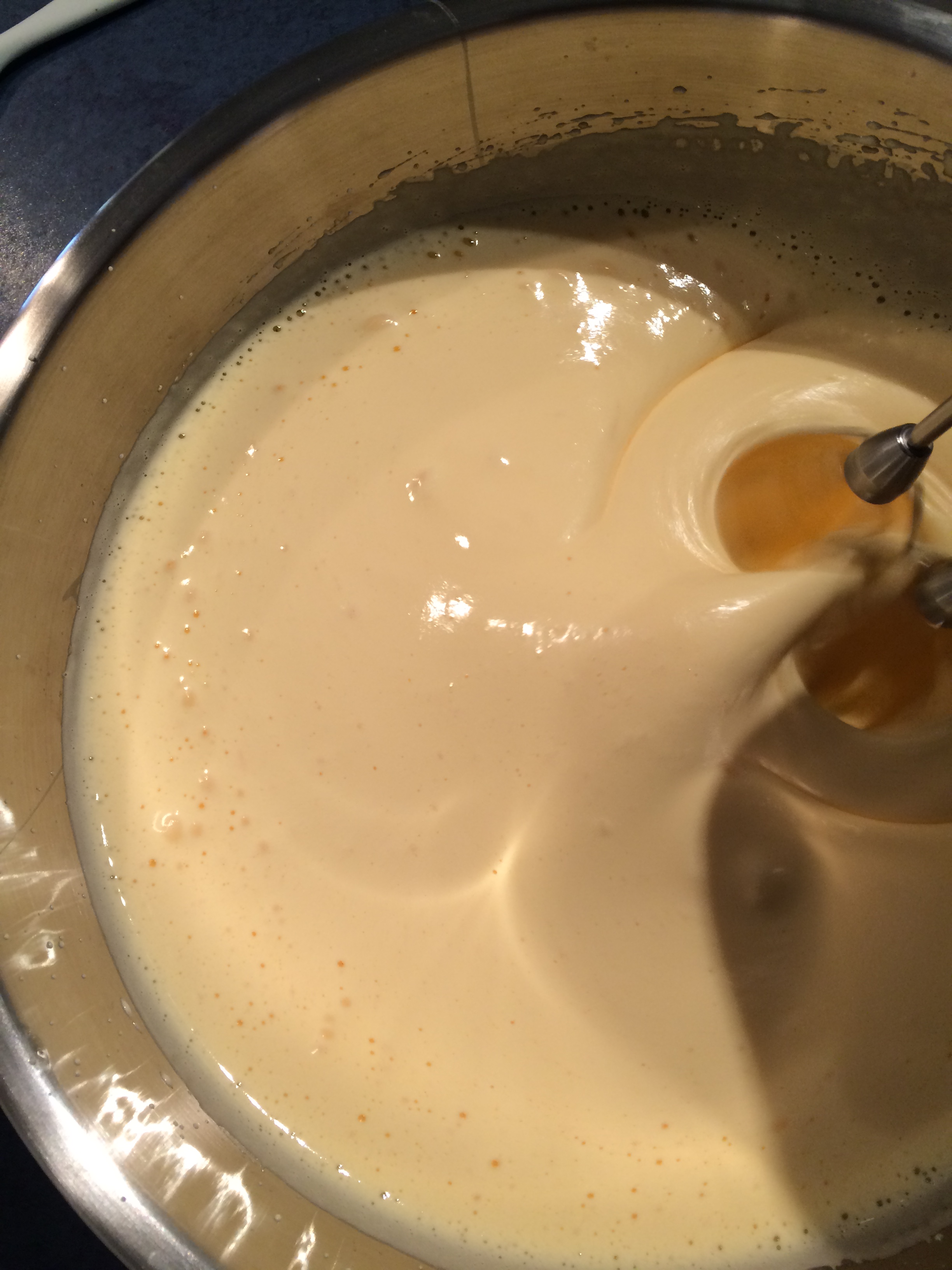 Das Backen hat begonnen und läuft sehr gut. Die zwei Vanillekuchen für die untere Torte, die zwei Schoko-Biskuit für die Mittlere und die zwei kleinen Biskuit für die obere Torte sind gelungen. In Folie eingepackt dürfen sie jetzt über Nacht ruhen – und werden hoffentlich schnittfest. Danach habe ich noch die Vollmilch-Schokoladen-Ganache gemacht und bin so gegen 01:00 Uhr ins Bett gefallen. Für Morgen, Donnerstag, Feiertag und Anreisetag der Hochzeitsgesellschaft habe ich mir mal den Wecker für 07:00 Uhr gestellt. Muss ja die einzelnen Kuchen fertig stellen. Gute Nacht.