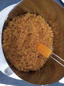 Löffelbiskuits in eine Küchenmaschine zum Zerkleinern geben. Wahlweise genügt auch ein Gefierbeutel, ein Nudelholz und etwas Kraft aus dem Oberarm.
