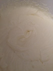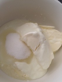 Frischkäse, Joghurt, Zucker und Zitronensaft mit dem elektrischen Handrührgerät mixen, bis eine homogene Masse entstanden ist.