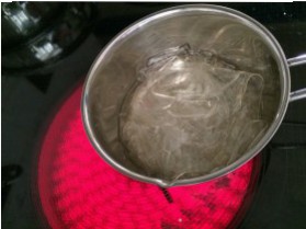 Die Gelatine in kaltem Wasser für ca. 10 Min. einweichen.