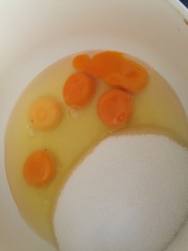 In einer Schüssel die Eier mit dem Zucker schaumig aufschlagen. Danach die geschmolzene (und abgekühlte) Butter zusammen mit dem Vanillezucker (wahlweise –paste) weiter rühren. Lasst euch dabei ruhig Zeit. Es soll eine weiche homogene Masse werden.