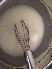 Dann mit dem Mixer weiter bearbeiten, bis alles eine homogene Masse gibt.