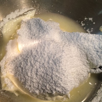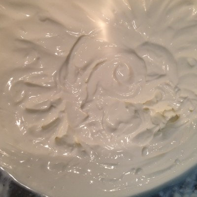 Diese Masse dann unter die restliche Quarkmasse geben und mit einem Schneebesen gleichmäßig und zügig einarbeiten. Das ist wichtig, damit die Masse gleichmäßig fest wird.