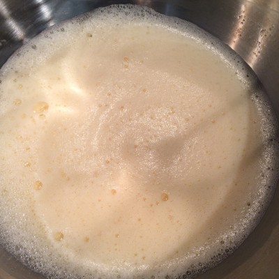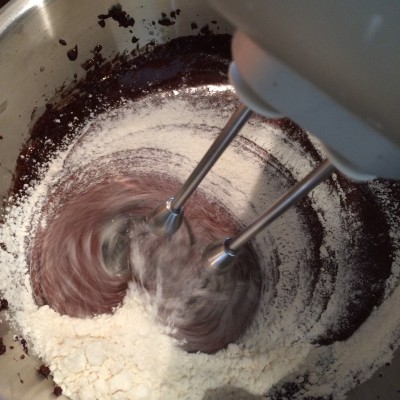 Langsam die mit Wasser aufgeschlagenen Eier dazugeben. Zum Schluss noch die 75 gr. Mehl einarbeiten.