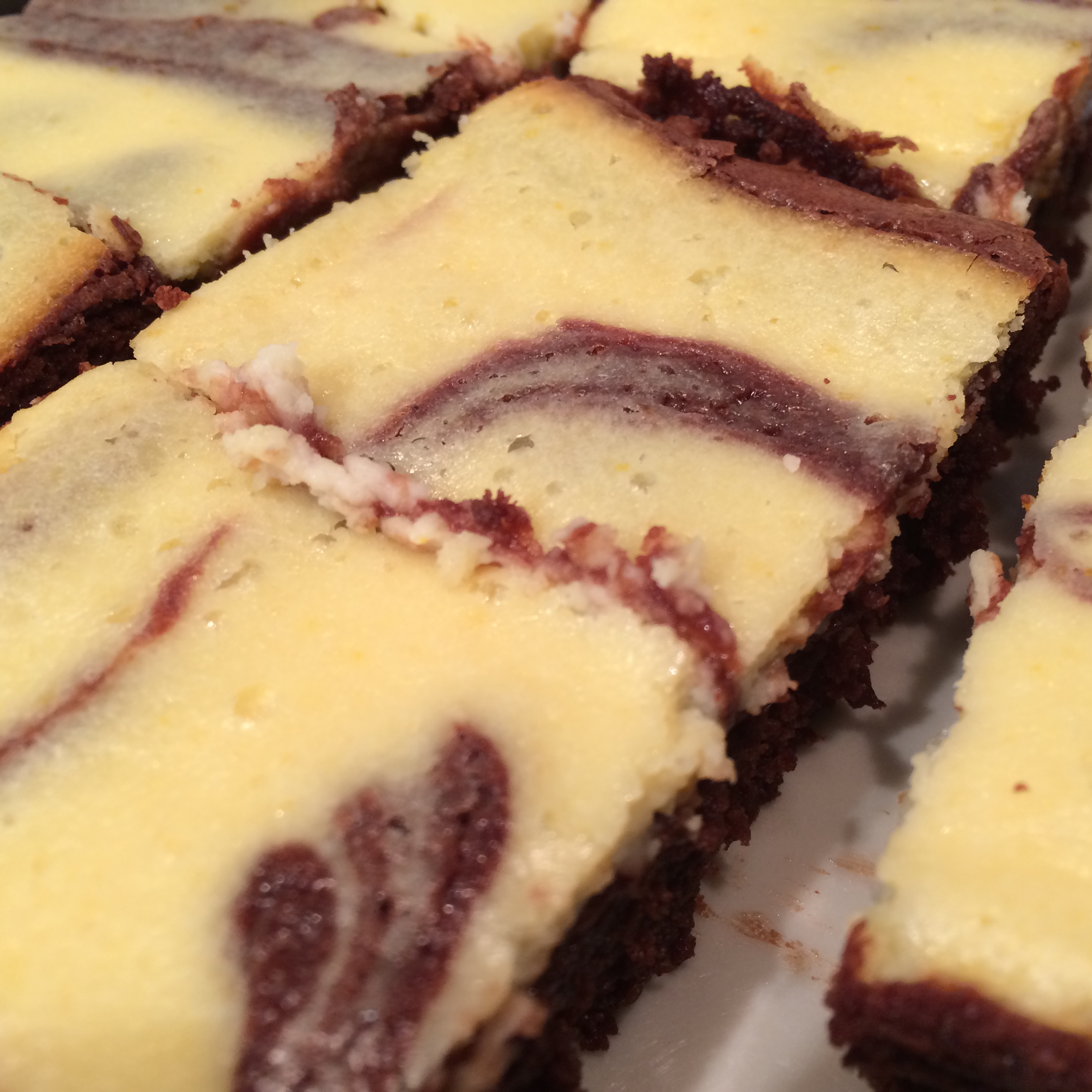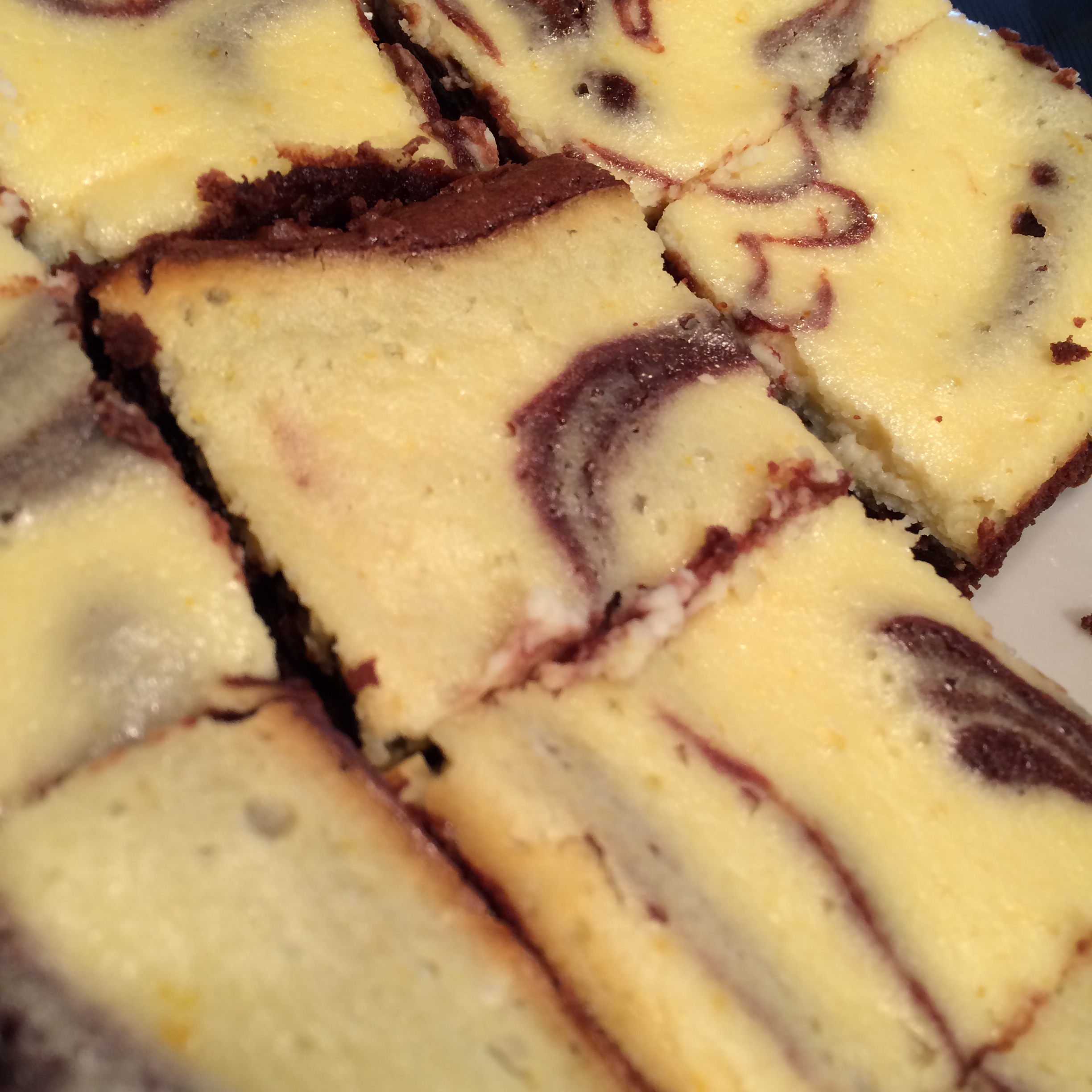 Die Kombination aus Schokoladenbrownie (der ja so richtig schön matschig/fudgy sein darf) und der Quarkeinlage mit Orangengeschmack hat mir richtig gut geschmeckt. Den richtigen Zeitpunkt zum rausholen aus dem Ofen ist etwas knifflig. Die Zeitangabe solltet ihr als circa-Angabe sehen. Bei Brownies ist etwas zu früh immer noch besser als zu spät – wenn sie dann zu trocken sind.