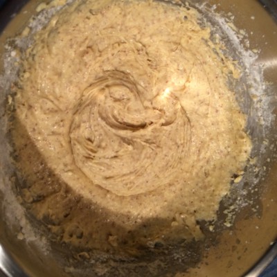 Mehl, Mandeln und Backpulver mischen und zusammen mit der Sahne kurz aber gründlich unterrühren.