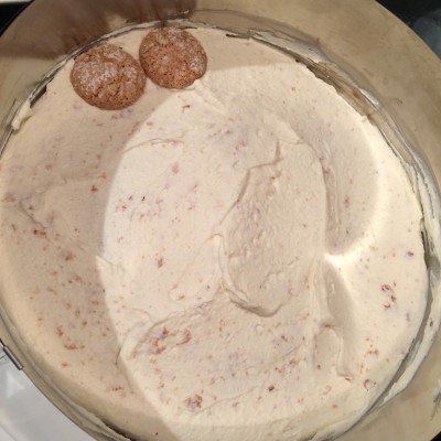 Ca. 1/3 der Mascarponecreme darauf streichen und gleichmäßig mit den Amarettini belegen.