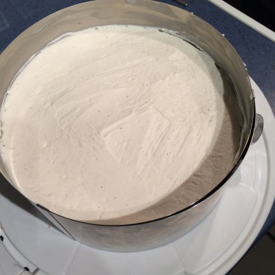 Mit der restlichen Creme bedecken. Für über Nacht kalt stellen, damit er schön durchziehen kann und vor dem Servieren dick mit Kakao bestäuben.