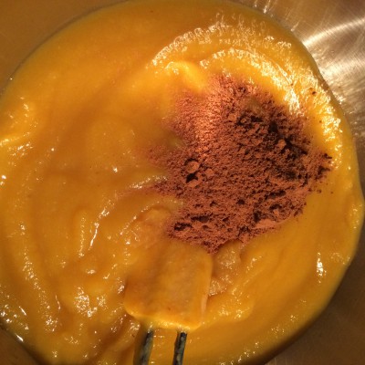 Eine weitere Änderung ist die Verwendung von Mus. Aber auch nur, weil ich noch ein Glas Apfel-Mango-Mus im Kühlschrank hatte, das unbedingt weg musste. Das hatte ich eigentlich mal für Pfannkuchen/Waffeln gekauft, aber nie geöffnet.