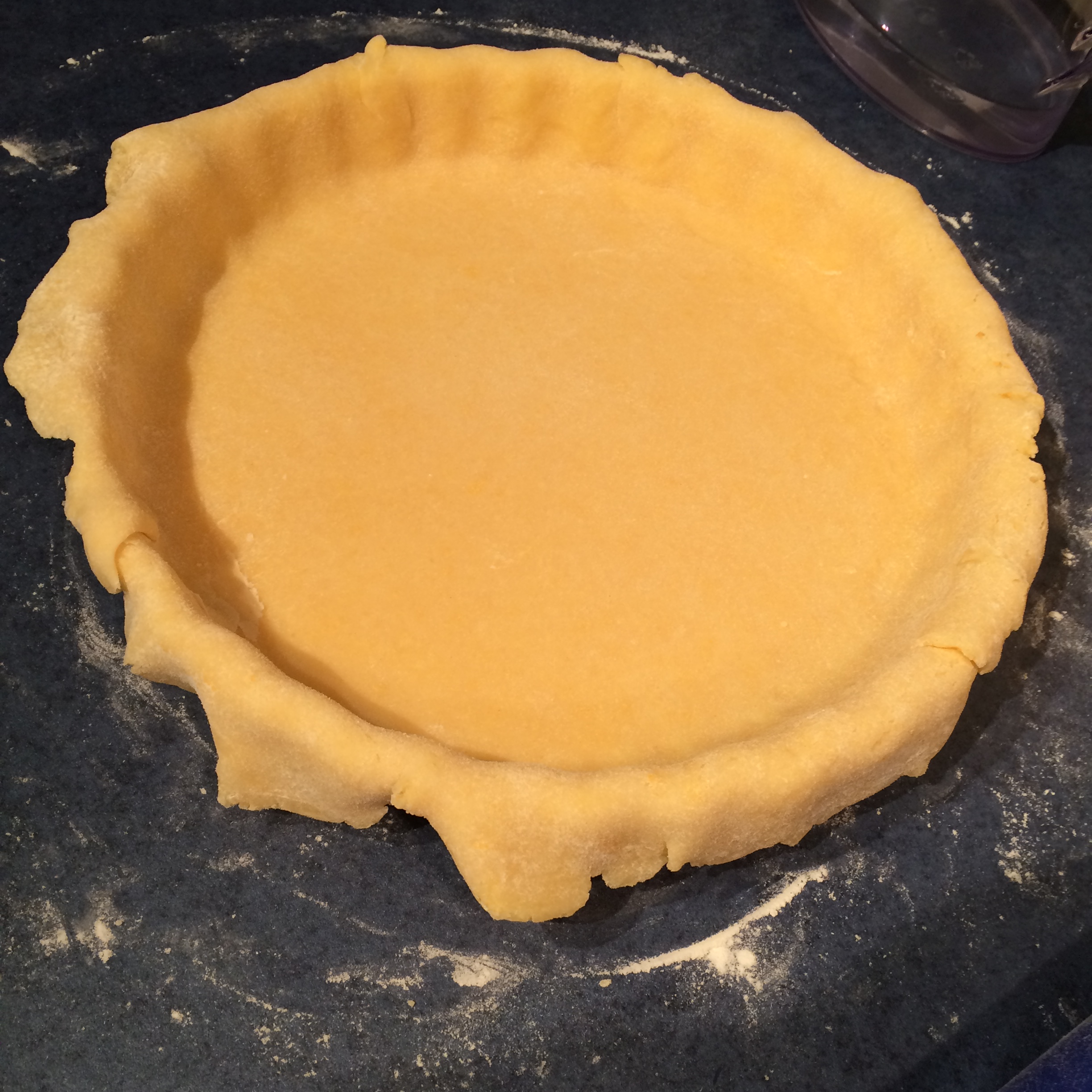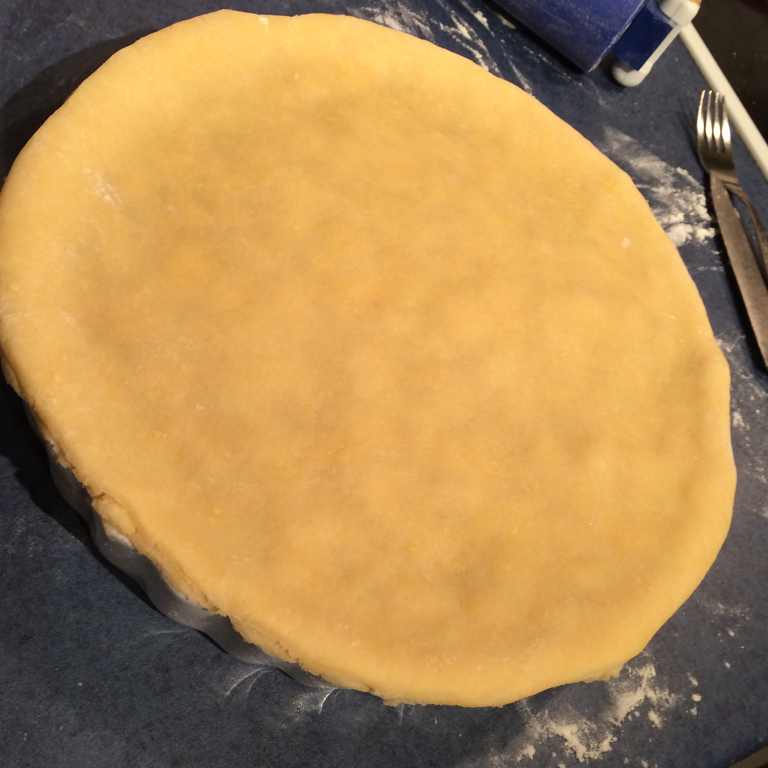 Während dieser 10 Minuten den Teig aus dem Kühlschrank holen und halbieren. Die erste Hälfte ausrollen und damit die Tarte-Form inklusive dem Rand auskleiden. Für den Deckel die zweite Hälfte des Teiges auch gleich in Form rollen.