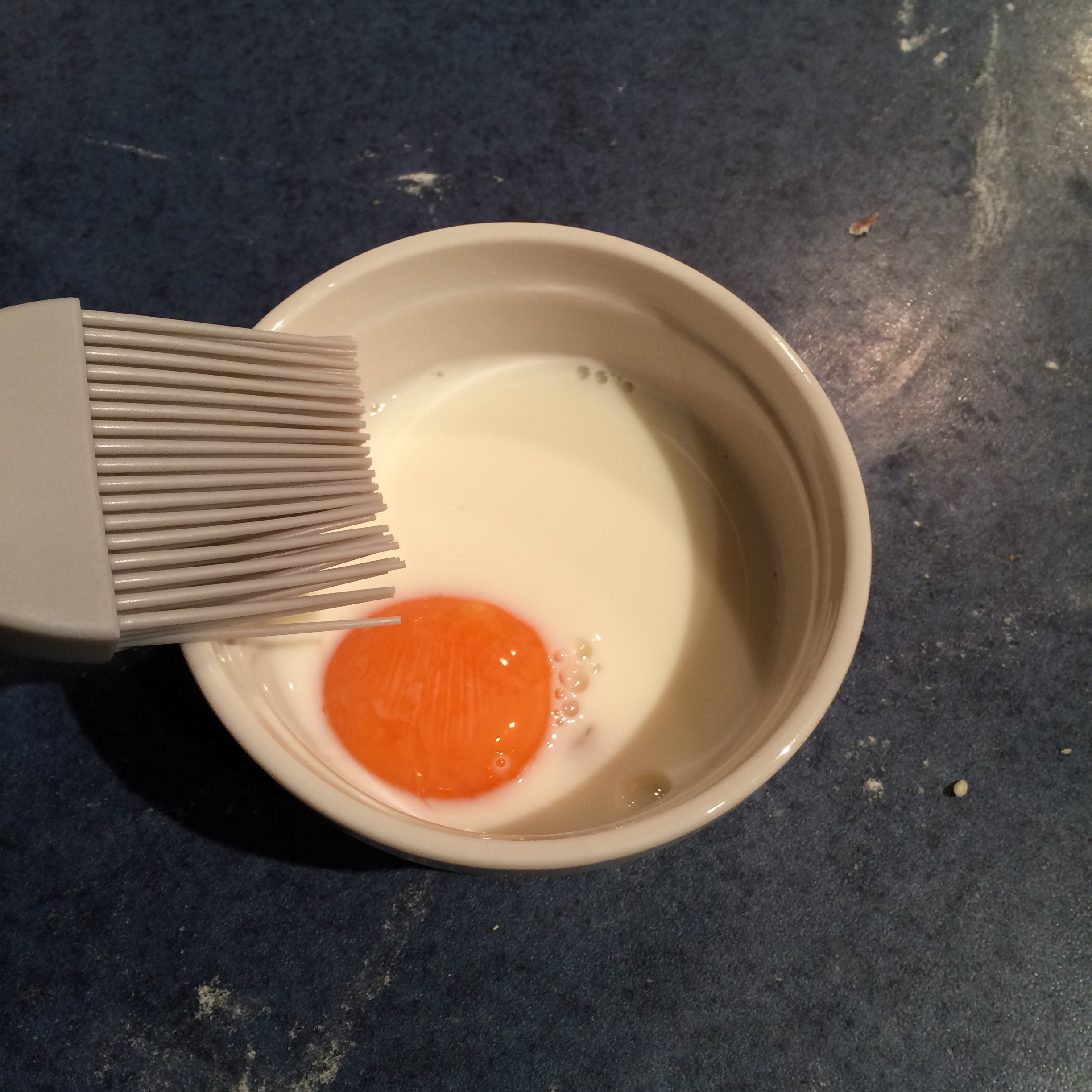 Das Eigelb mit der Milch verquirlen und den Deckel damit einstreichen.