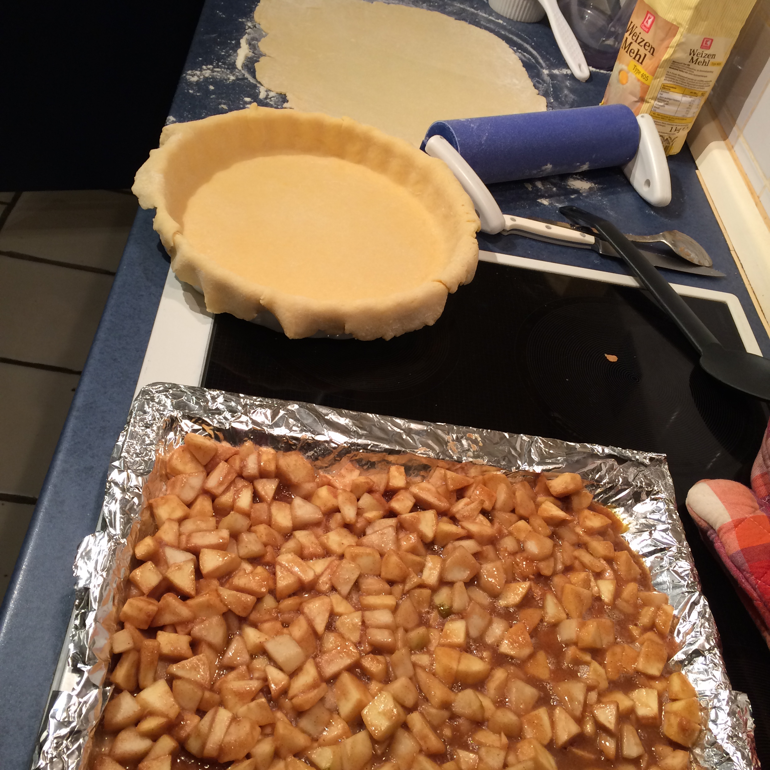 Die Kombination Apfel und Birne für einen klassischen Pie ist unschlagbar. Vor allem zu der Jahreszeit, zu der leckere Beeren von den Marktständen verschwunden sind. Wie bereits bei meinem Apfel-Birne-Zimt-Pie wird auch dieses Mal die Füllung soweit vorbereitet, dass der eigentliche Backvorgang eher dem Mürbeteig gilt.