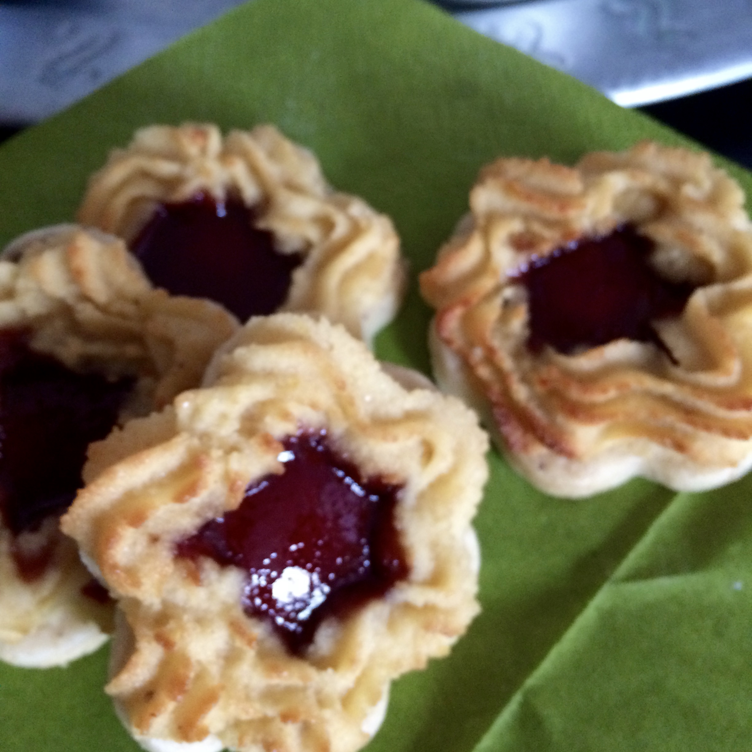 Diese kleinen Pfauenaugen musste ich einfach machen. Ich selbst liebe ja die normal großen Pfauenaugen. Die bekomme ich bei unserem Bäcker auf dem Wochenmarkt zwar nicht immer, aber wenn….dann ist das für mich jedes Mal eine Belohnung für das frühe Aufstehen. Die Kombination mit dem klassischen Plätzchenboden, dem Marzipan und der herrlich roten Füllung haben es mir angetan.