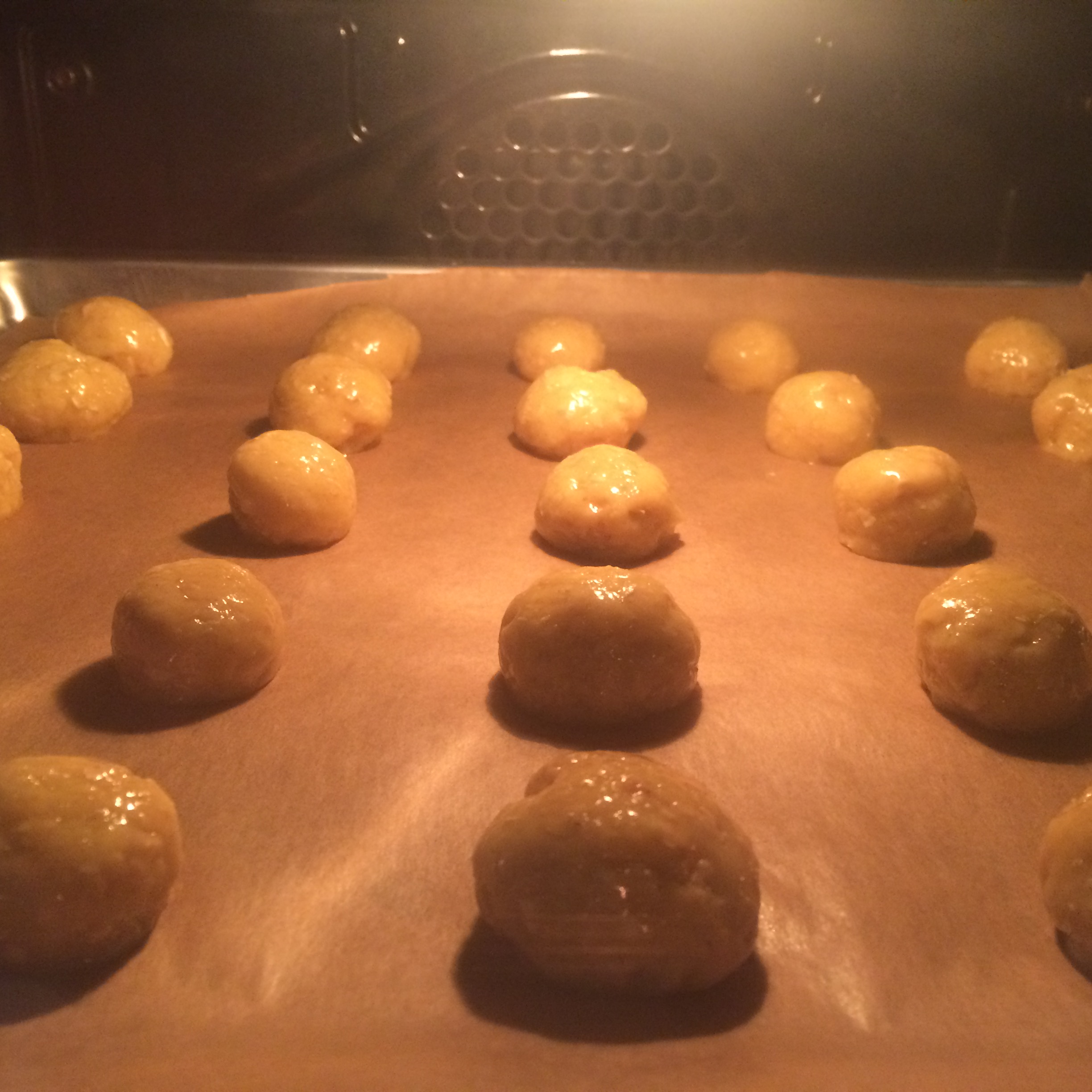Gleichmäßig Häufchen mit etwas Abstand auf das Backblech setzen. Nicht zu hoch. Wenn ihr es mit zwei Teelöffeln macht, drückt sie eventuell etwas flach. Ich habe mit den Händen kleine Kugeln geformt und etwas angedrückt.