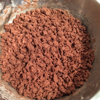 Dann das Mehlgemisch in die Buttermischung geben und mit dem Mixer einarbeiten, bis ihr Streusel habt.