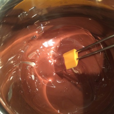 Jetzt die restliche Kuvertüre (50 gr.) schmelzen.