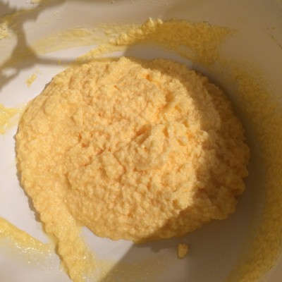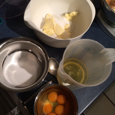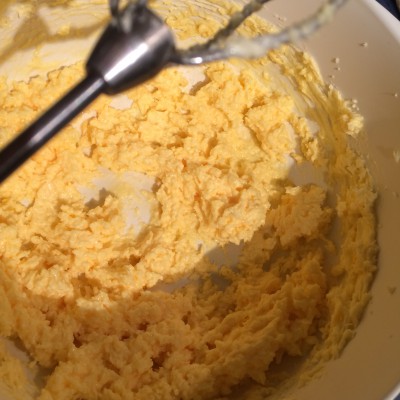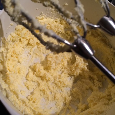 Schlagt die Butter mit 75 gr. des Zuckers richtig schaumig. Zieht dann nach und nach die Eier und Eigelbe unter. Hierbei schön Zeit lassen, bis jedes Ei eingearbeitet ist.