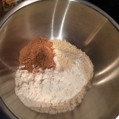 In einer separaten Schüssel mischt ihr das Mehl, die Mandeln und eure Gewürze.