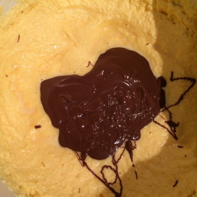Zieht dann die leicht abgekühlte Kuvertüre unter.
