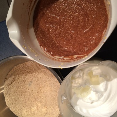 Das Rezept gehört ja in die Kategorie der etwas aufwändigeren Torten. Ihr müsst (wenn ihr euch an mein Rezept haltet) allein zwei unterschiedliche Böden herstellen. Einen etwas würzigeren, dunklen Boden und einen klassischen Biskuit. Das ist zwar kein Muss – aber ich wollte von den Böden her unterschiedliche Strukturen und Geschmacksrichtungen haben. Zudem war ich von der Höhe des dunkeln Bodens etwas enttäuscht und wollte noch für etwas zusätzliche Höhe sorgen.