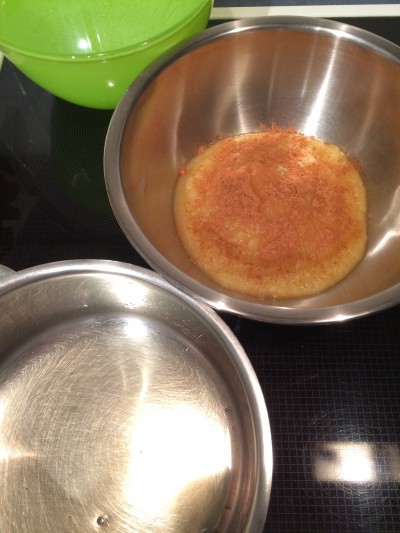 Jetzt könnt ihr euch an den hellen Boden machen. Bei mir war es so, dass der dunkle Boden fertig war, als ich mit der Apfelfüllung fertig war. Dann habt ihr auch (falls ihr nicht mit zwei Springformen arbeitet) wieder eine Springform frei.