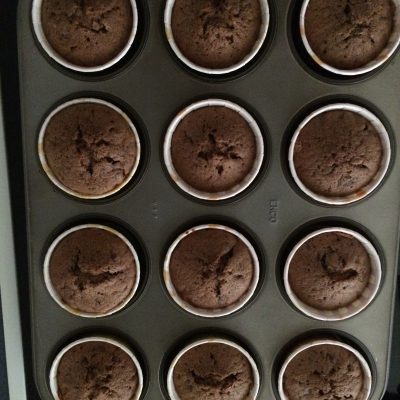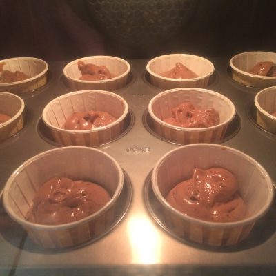 Alles mit einem Spritzbeutel in Muffinformen spritzen (allerhöchstens zu 2/3 füllen) und bei 175°C (Ober-/Unterhitze) für 20min backen. Stäbchenprobe!!!!!!