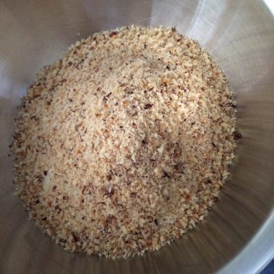 Gemahlene Haselnüsse um den Mürbeteig zu bedecken
