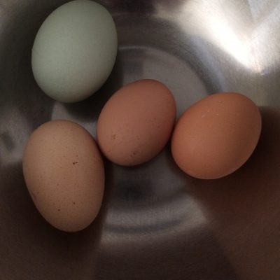 Und wenn ihr die Bilder genau anseht, werdet ihr bei den Eiern sehen, dass ich vier verschiedene Größen/Farben habe. Das liegt daran, dass meine Schwester seit geraumer Zeit ein paar Legehennen in ihrem Garten hat. Naturgemäß und bei guter Pflege legen diese auch schön regelmäßig Eier. Im Normalfall werden diese auch (vor allem durch meinen Neffen) gut aufgebraucht. Letzte Woche hatte ich Glück – da waren auch für mich noch 10 übrig. Im Schnitt waren sie dann Größe M – aber beim Trennen merkte ich schon, dass eines davon Größe XS war.