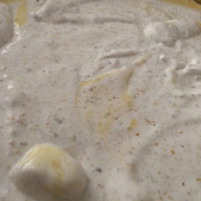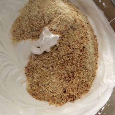 Wo auch immer ich dieses Rezept her habe – es schmeckt auf jeden Fall herrlich nussig durch die gemahlenen Haselnüsse und süß/sauer durch die Johannisbeer-Meringue-Mischung.