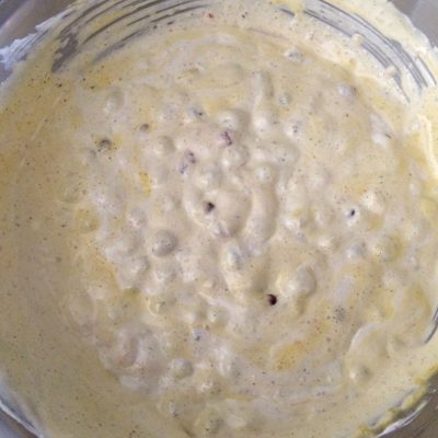 Das Ganze für ca. 60 Minuten im vorgeheizten Backofen (190°C Ober-/Unterhitze) backen.