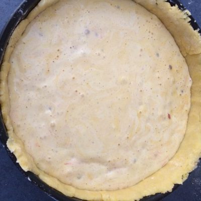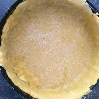 Aus den Zutaten für den Mürbeteig in einer Schüssel zügig einen Teig herstellen. In Folie eingepackt (etwas platt gedrückt und in eine runde Form gebracht) im Kühlschrank eine Stunde ruhen lassen.