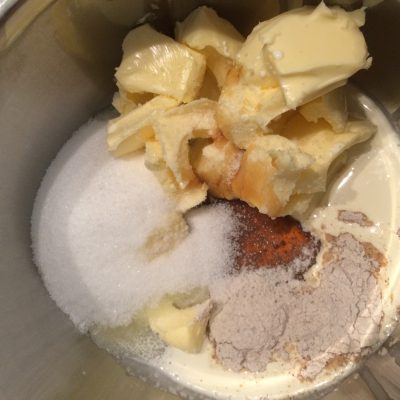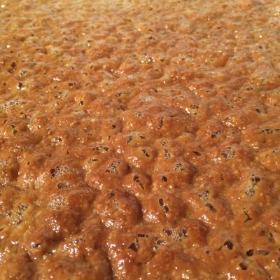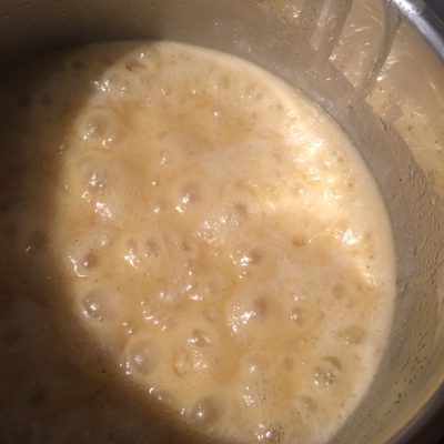 Dazu gebt ihr Butter, Zucker, Honig, Sahne, Vanille und das Salz in einen kleinen Topf und erwärmt alles. Es soll am Ende sprudelnd köcheln, bevor ihr die weiteren Zutaten rein gebt.