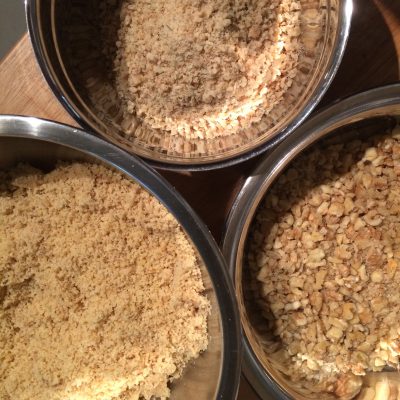 Zum Schluss dann noch 200 Gramm Walnüsse so lange in die Küchenmaschine gegeben, bis ihr fein gehobelte Walnüsse habt.
