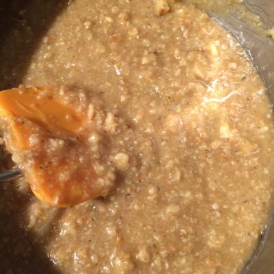 Diese festen Zutaten dann in die köchelnde Masse geben, von der heißen Platte ziehen und schön vermischen. Sollte das Ganze noch etwas zu flüssig sein, lasst es unter ständigem Rühren noch etwas einkochen. Ihr solltet eine zähe aber nicht feste Masse bekommen.
