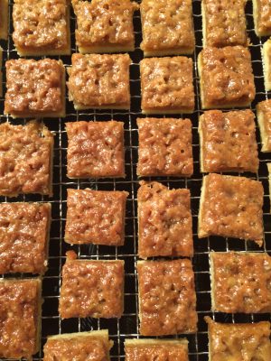 Solange alles noch lauwarm ist könnt ihr mit einem scharfen Messer die Plätzchen in Form schneiden. Wie es euch gefällt.