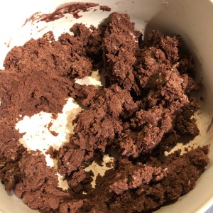 Mit dem Mixer (Knethaken) zu einem Teig vermischen – zum Schluss mit den Händen kurz kneten, eine Kugel formen und platt drücken. In Frischhaltefolie zwei Stunden im Kühlschrank ruhen lassen.