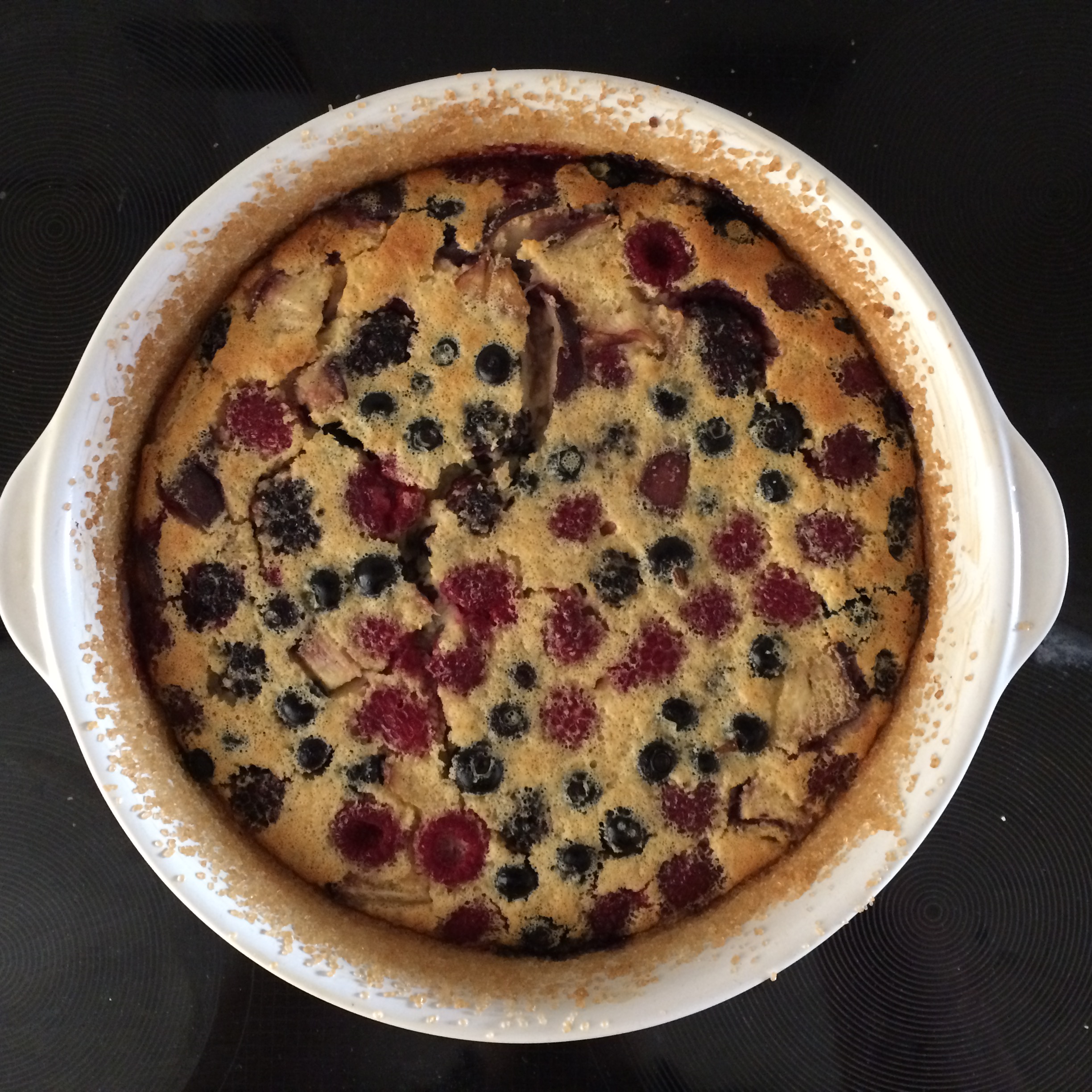 Sucht man nach einer Übersetzung für Clafoutis wird man nicht wirklich fündig. Am ehesten ist noch „Auflauf“ am gängigsten. Es soll im Grunde ein Zwischending von Auflauf und Kuchen sein.