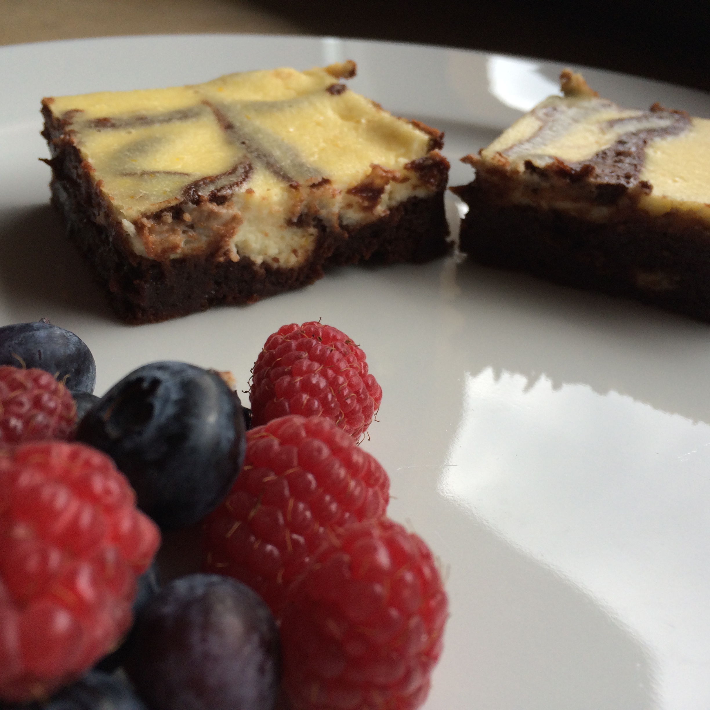 Die Kombination aus Schokoladenbrownie (der ja so richtig schön matschig/fudgy sein darf) und der Quarkeinlage mit Orangengeschmack hat mir richtig gut geschmeckt. Den richtigen Zeitpunkt zum rausholen aus dem Ofen ist etwas knifflig. Die Zeitangabe solltet ihr als circa-Angabe sehen. Bei Brownies ist etwas zu früh immer noch besser als zu spät – wenn sie dann zu trocken sind.