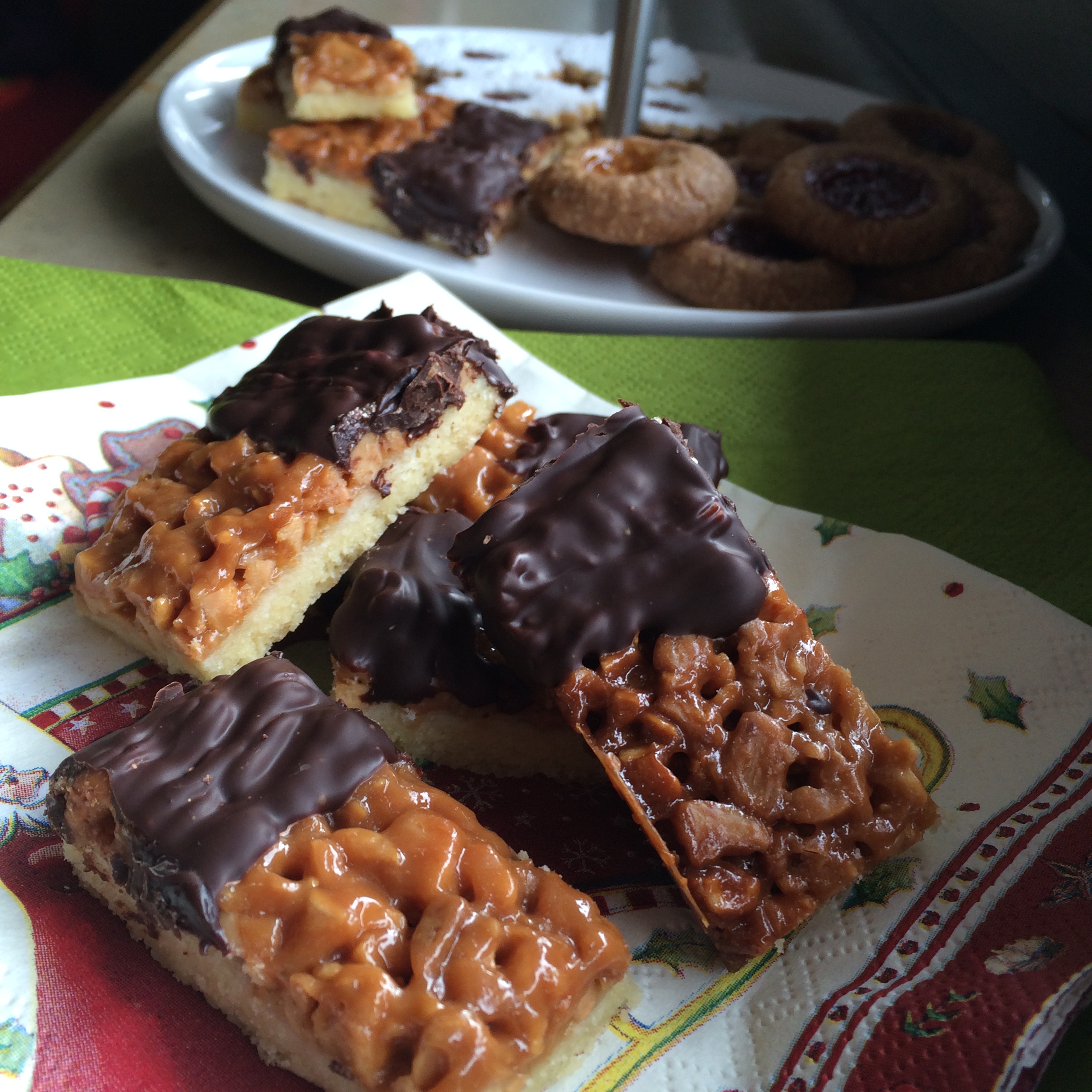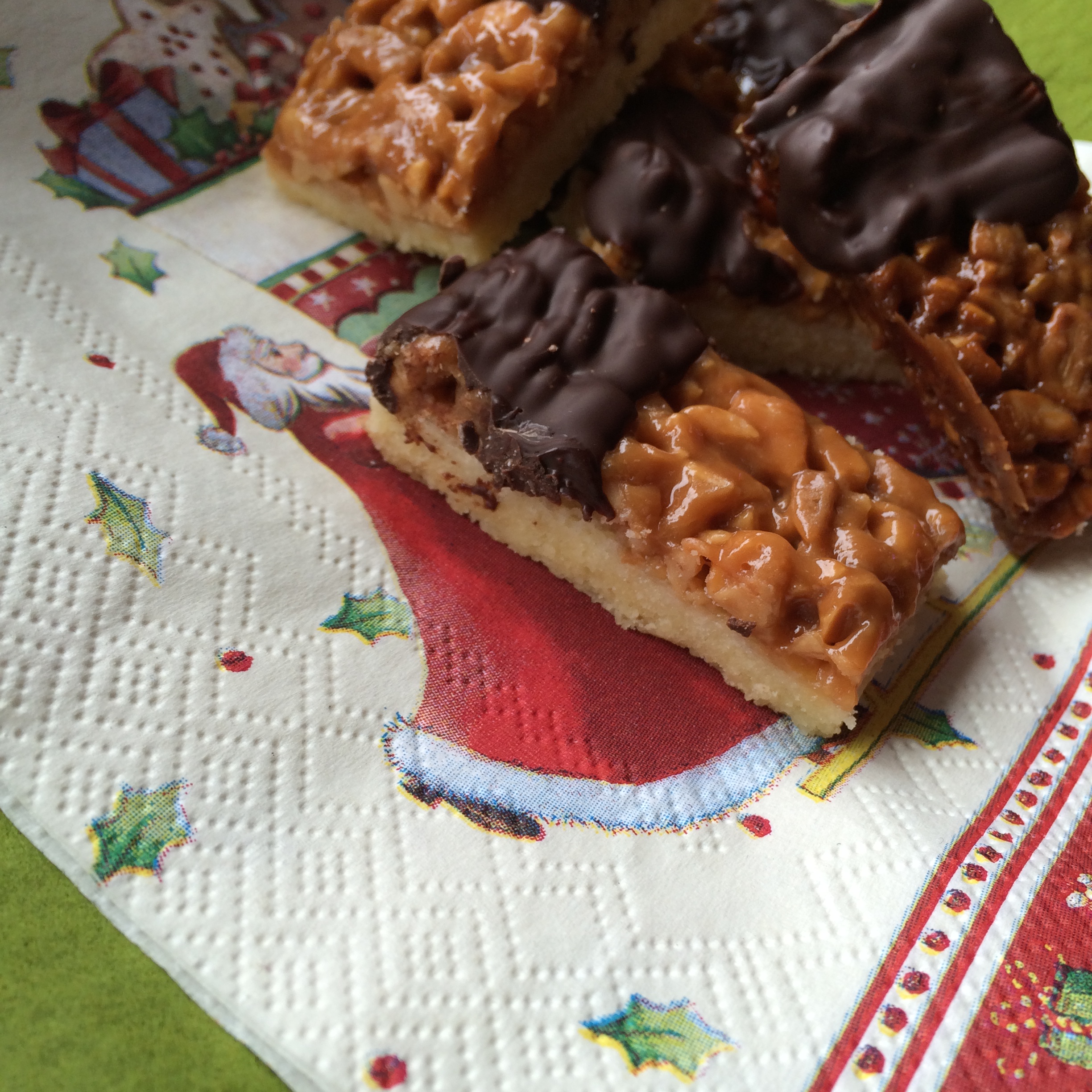 Wie bereits angekündigt (https://www.facebook.com/TheRobbylicious/) hier mein erstes neues Weihnachtsrezept. Den ersten Plätzchen-Back-Samstag habe ich erfolgreich beendet. Zwei bereits bewährte Rezepte aus meinem Fundus (Ausstecherle und Zimt-Marmelade-Plätzchen) sowie diese herrlich nussigen Schnitten habe ich an diesem Tag gemacht. Jetzt freue ich mich schon auf das Wochenende. Das wird spannend mit drei Rezepten, die ich bisher noch nie gemacht habe. Falls alles gut geht, werdet ihr also bald noch mehr von meiner Weihnachtsbäckerei sehen und lesen können.